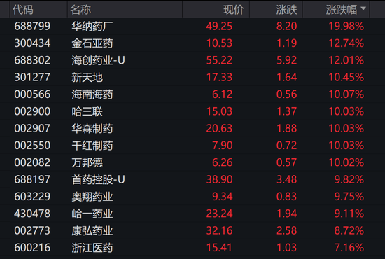 舒泰神、科兴制药、冠昊生物等涨超10%。